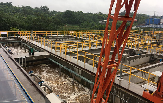 本項目設計規模15000噸/天,分三期實施,一期新建日處理5000噸/天污水處理廠,深度處理工藝MBR系統設計一期處理規模為3000噸/天,污水處理主體工藝采用A2O+MBR,出水排放標準達到《四川省岷江、沱江流域水污染排放標準》(DB51/2311-2016)合格標準。項目選型為水藝SMU-30A產品,設計平均通量為13.35L/m2/h。項目設計2座膜池,每座膜池布置6個膜架,每個膜架52簾SMU-30A,共用膜面積9360平方。項目投運時間為2018年3月。