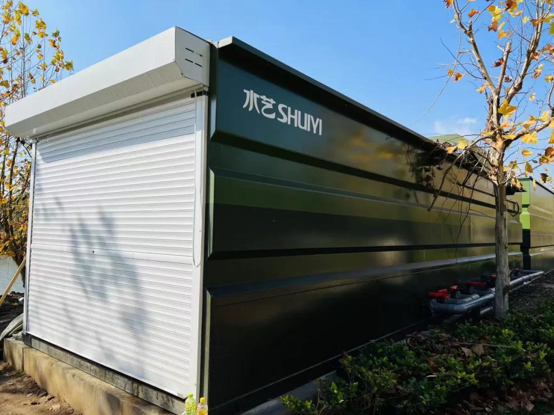 此次安裝的初期雨水設(shè)備,采用的高效脫氮-超速凈化增氧裝備一體化污水處理工藝。由水泵將河水由提至高效生化脫氮一體機(jī)內(nèi),通過高效生化一體機(jī)內(nèi)的大量的馴化細(xì)菌,在兼氧、好氧微生物的新陳代謝作用下,去除污水中的各類污染物。然后將生化出水注入超速凈化一體機(jī),與除磷及絮凝藥劑充分混合,后經(jīng)沉淀作用使泥水分離,污泥進(jìn)入污泥池脫水減量化后外運(yùn)處置。為節(jié)約空間、減少運(yùn)行成本,此次設(shè)備采用一體化設(shè)備模塊式處理,在外觀上這兩臺(tái)設(shè)備更像兩個(gè)鐵皮箱,并對(duì)降低噪音作了優(yōu)化處理。